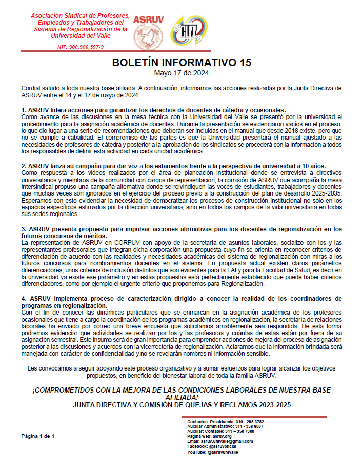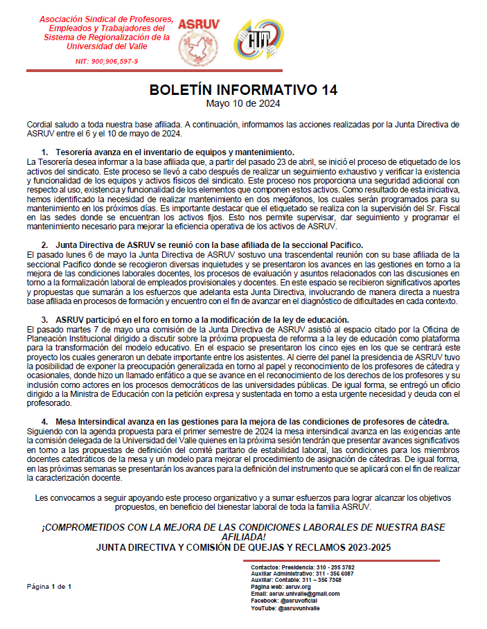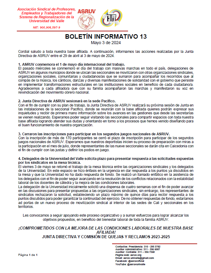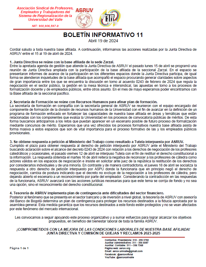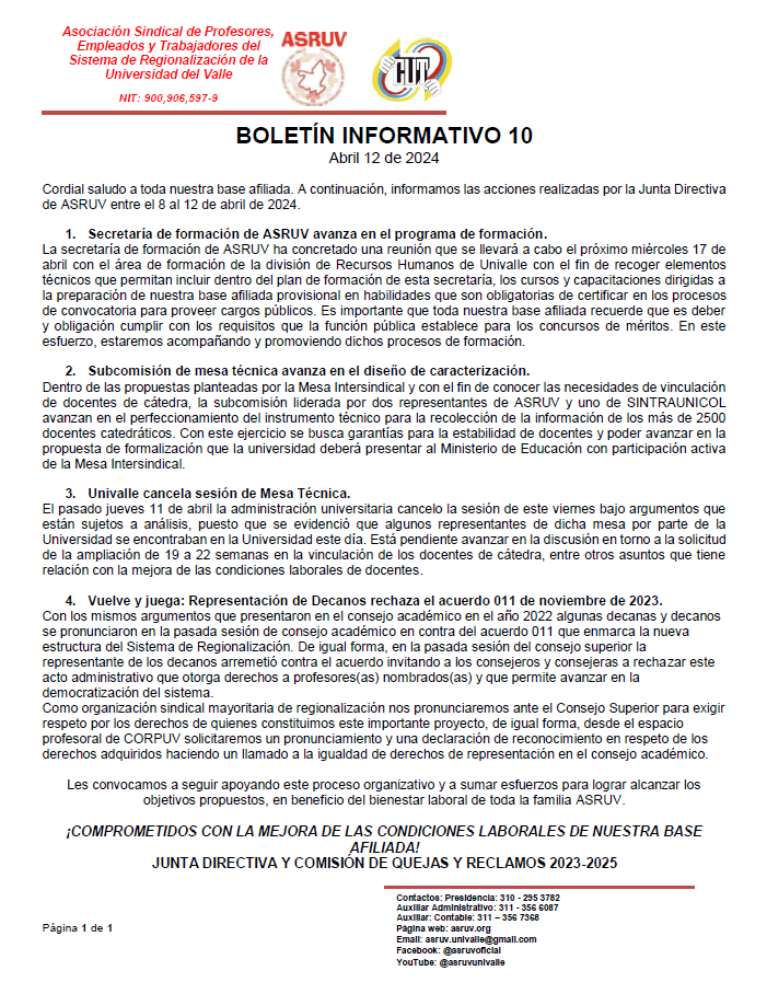 Afíliate Afíliate DESCARGAR PDF Asociación Sindical de Profesores, Empleados y Trabajadores del Sistema de Regionalización de la Universidad del Valle