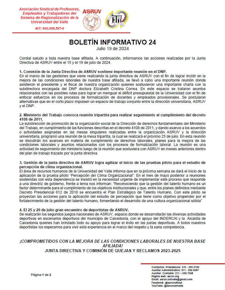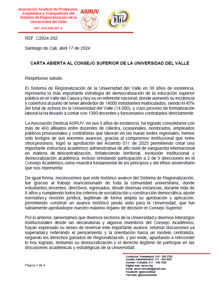 PRUNCIAMIENTO PUBLICO FRENTE A LAS AMENAZAS AL EQUIPO DIRECTIVO DE LA SECCIONAL ZARZAL TULUA junio 13, 2025